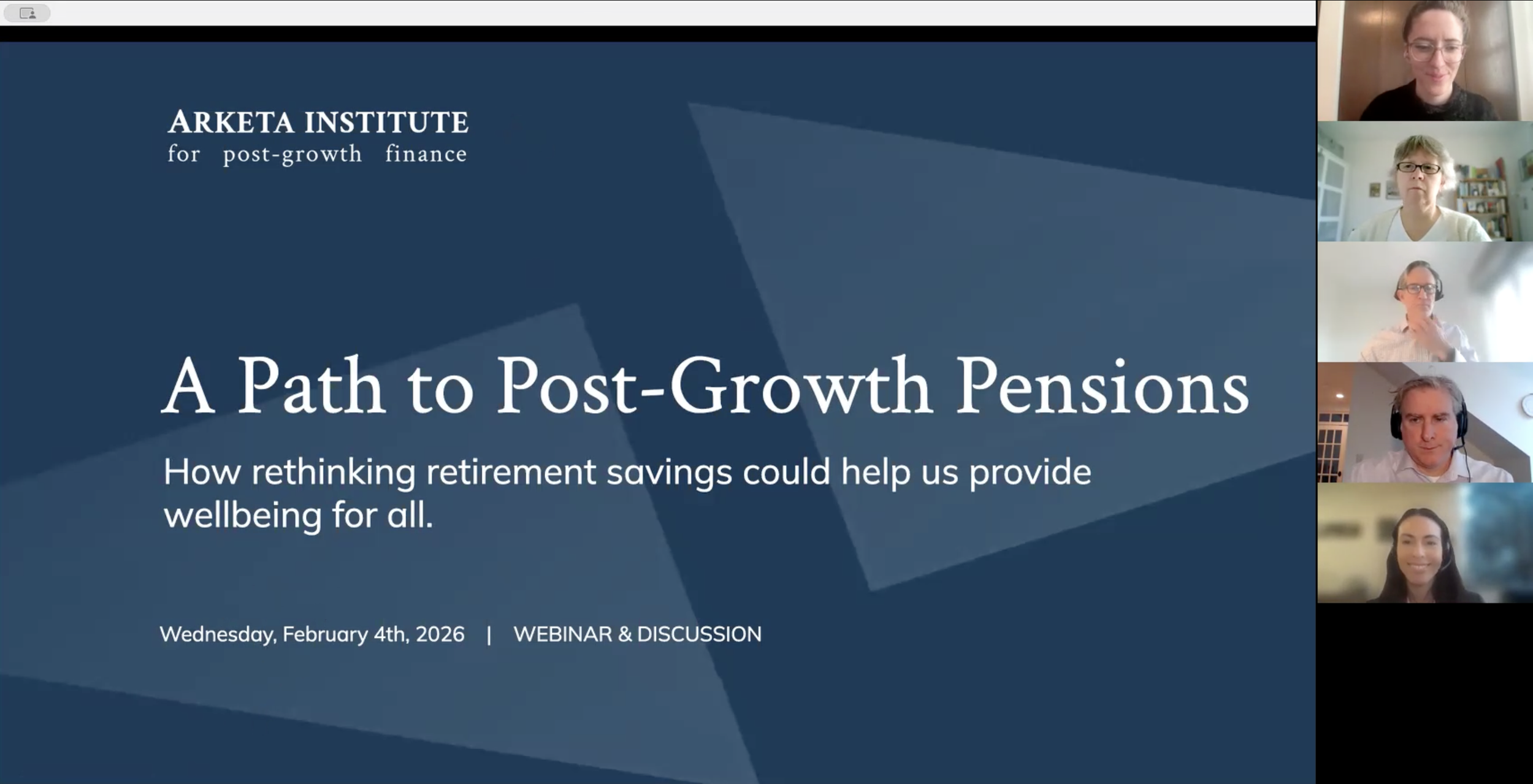 On Feb. 4th, 2026, the team from Arketa Institute presented the key insights from their paper 'A Path to Post-Growth Pensions'.